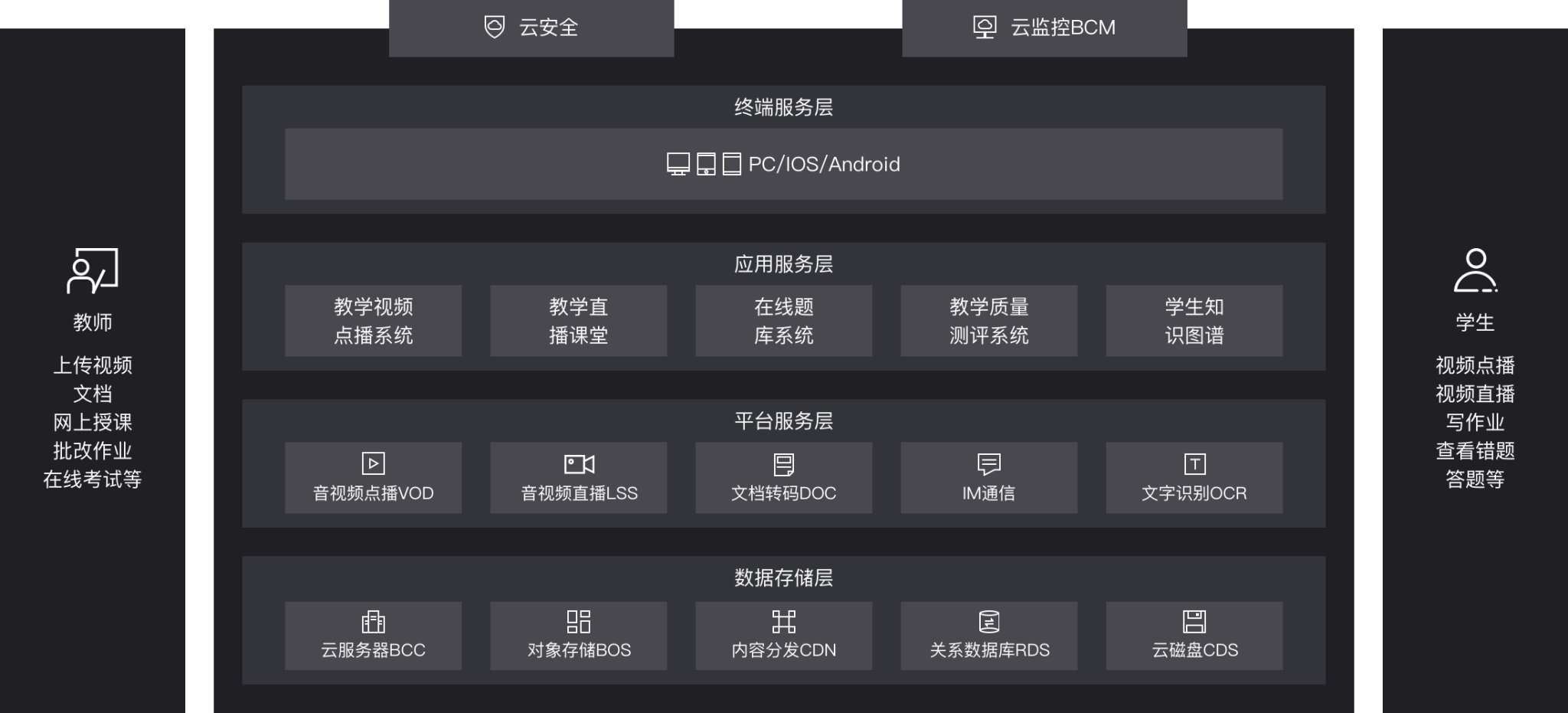 依托稳定的云计算基础服务,借助“百度文库”的生态内容,为您构建百度独有的“基础云技术+教育云平台+教育大数据”解决方案,推进教育行业的数字化和智能化,极大地促进行业的转型升级