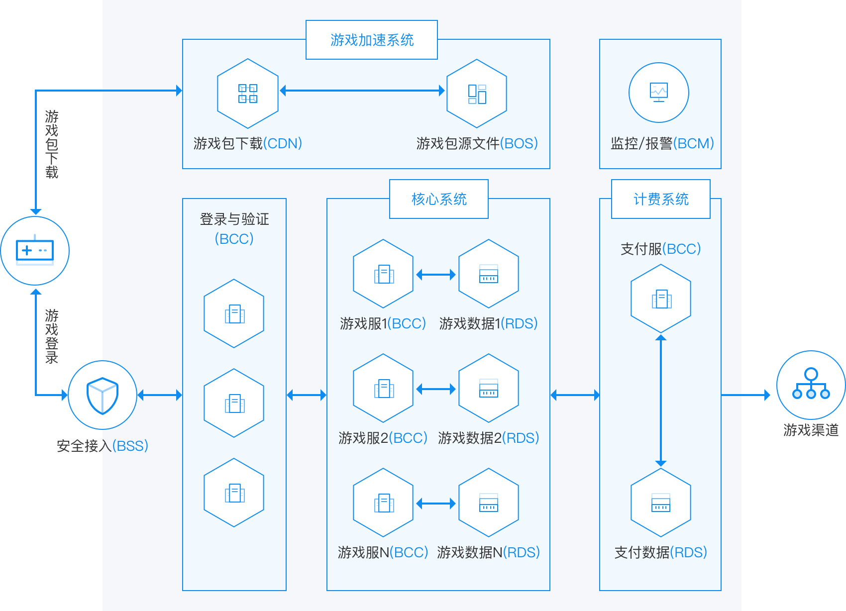 极致的计算、网络、存储、大数据分析、视频直播服务,全方位满足从轻量级到重度游戏的业务需求,为游戏服务端提供一站式、高可靠、高性能的产品与方案